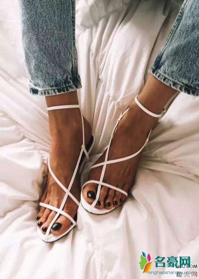 ins上见到最多的就是白色款的细带凉鞋,夏天更具清新感,而且和任何颜色的衣裳都能相容,也可以涂一个自己喜欢的指甲油,不经意间的美好!