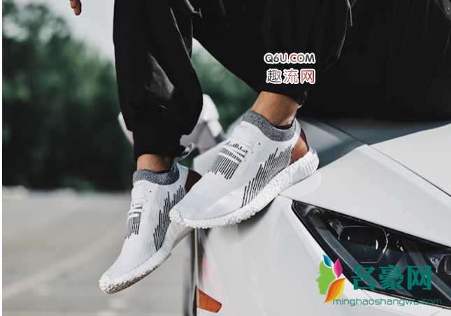 这双鞋款鞋面全采用 Primeknit 材质,并以白色基调为主,侧身的黑色条纹,以及后跟的棕色皮革作为点缀。