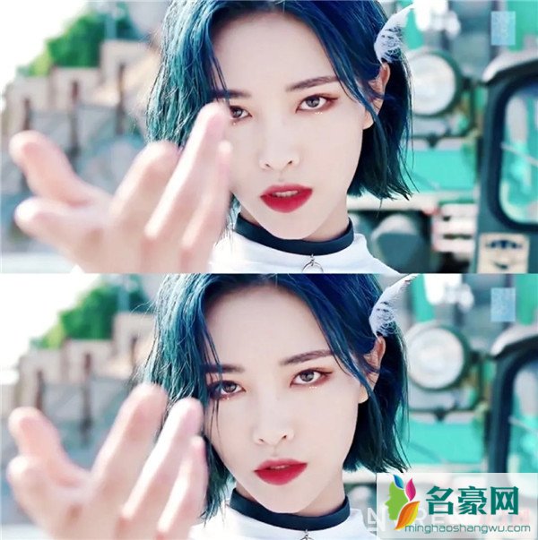 这不,在THE NINE里面以第三出道的许佳琪,明明是气质清冷的少女,却也妥妥hold住浓烈的妆和蓝绿的发色。看来,时髦少女,都得染上那一抹蓝发呢!