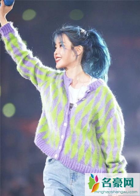 舞台上的IU还真是造型多变!蓝绿的马尾发型配上白皙的皮肤,身穿拼色毛衫外套,秒变时髦的可爱少女啦!