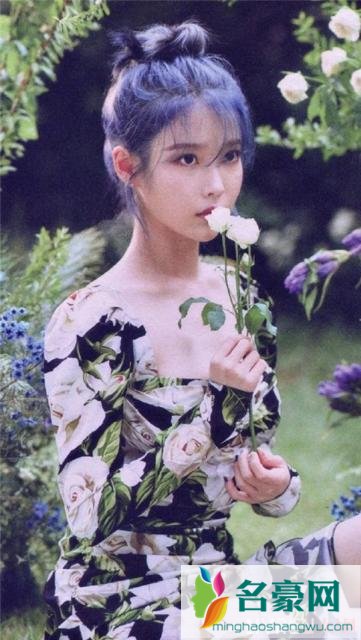 蓝色偏紫的秀发搭配减龄的丸子头,IU这个造型无论是从颜色和款式来看都宛如落入凡间的精灵少女。