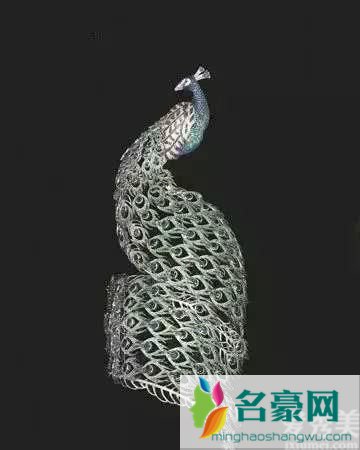 这枚蓝孔雀手镯来源于一款蓝孔雀形耳环耳坠的方案设计手稿,精美的孔雀尾巴如蕾丝花边般柔和紧紧围绕手腕,手镯上50根细致纤长的羽毛将扣锁完全隐藏,这类羽毛由7500枚微小的直径均在0.毫米的稀缺宝石构成。