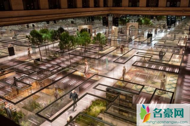 随著音乐声响起,穿著华服的模特儿走上秀场,一片片透明玻璃秀场随之曝光,在摄影镜头的转换下,意外发现经典FF Logo藏于其中,不禁佩服起Kim Jones的创意,同时也呼应著主题紧扣品牌典藏的历史。