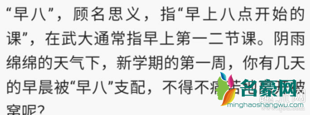 不知道大家听说过武大的早八没,早八人的话也就是指的是早上八点起来上课和工作的的人,在早安打工人之后,后面就出现了早八人,前有996,现在有早八人,早安人,对于这样的社会文化,大家玩的好像乐此不疲的,