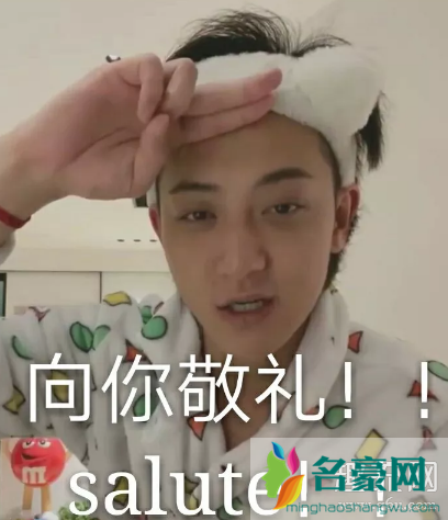 其实这个梗小编觉得只有黄子韬属将其的精髓之处发挥的十分到位!就是黄子韬每一次在说这句话的时候一定会把自己的食指与中指并拢,然后再放在额头前面!因为只有这样,说出来的“salute”才最具灵魂。