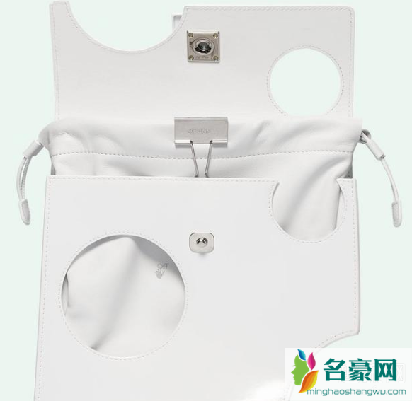 事实上,包包内部配有一个纯白色抽绳束袋,可以放置随身小物,也不用担心包内物品从圆孔中掉落,并缀有标志性长尾夹装饰。
