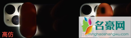 还有就是充电盒,也可以强光照射一下,下图中,右边的是正品,左边的是高仿。