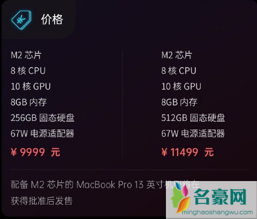 苹果新 MacBook Pro 13 英寸( M2) 款 1299 美元起售。