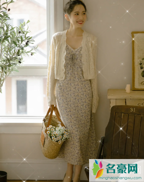 法式风碎花裙+钻石扣针织开衫,这套很适合喜欢复古风的宝宝们,轻薄的开衫还可以防晒,一举两得~