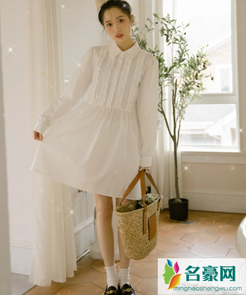 甜美衬衫连衣裙,木耳边的设计太乖巧了令,搭配丸子头,妥妥的白月光穿搭。