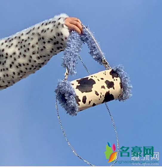 皮拼蓝羊卷毛手提腋下包,价格:196.2元,外形超级无敌特别的一款,野鸡女孩必备惹!牛奶纹配上蓝色羊毛卷,还有圆筒状的包身,真是光靠包包,你的穿搭就赢了。