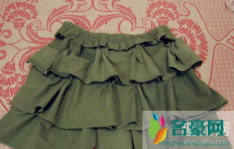 步骤4、将所有的零件从下往上接在一起,最后上腰带。如果对做褶皱有信心的话,改成松紧带的也不错,旧牛仔裤改造塔裙改好了,效果还不错。
