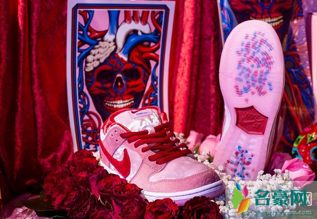 情人节DUNK设计确实让人眼前一亮!鞋身采用了骚粉颜色,搭配前几年比较流行的天鹅绒材质,鞋底粉水晶并附着粉蓝颗粒作为陪衬。后跟处的骷髅头点缀,以及鞋垫的丰富细节。足以看出这双鞋细节满满,如此高的关注度也回应了这双鞋的细节丰富度以及颜值让人着实喜爱。目前的价格现货5000+。如果想要自穿的朋友一定再等一等!情人节DUNK国外的发售量肯定比国内大,受疫情影响,国外的情人节DUNK会持续一段时间陆续到国。所以后期的市场价格现在谁都说不准会是怎样的。但我相信随着情人节的过去,热度下降。价格也会到达一个相对稳定且合适的价格。推荐入手价格2200-3100(男码)