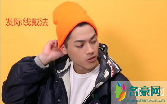第一种是基本的戴法,尽量可以露出二分之一的额头,在后面的部分你可能会盖住三分之一的耳朵,这种戴法会适合每一个人的脸型;