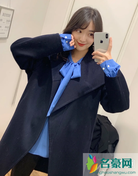 羊毛无领大衣432598,和咖啡色小套装的领子很像,穿上是很飘逸的感觉,选了Navy蓝色和刚才的天蓝色真,丝衬衫非常搭,走起路来带风的大衣,建议选大一码气场更足。