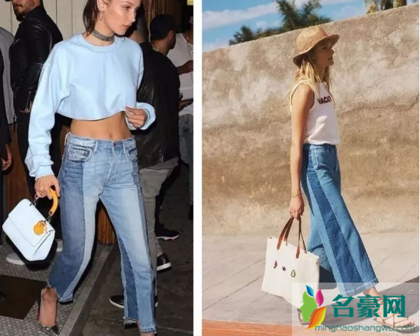 浅色牛仔会显腿粗这点相信大家都知道,所以在买牛仔裤的时候我比较推荐拼色款,中间浅色边缘深色的款式可以造成视觉偏差,看起来腿细不止一圈。