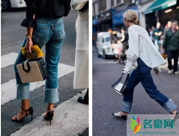 锥形的mom jeans这几年都很火,今年比mom jeans更火的是渔夫牛仔裤(就是裤脚往上翻像是渔夫下水需要卷边的裤子)。烧饼觉得这种裤子看起来更有层次一些,时髦感更强一点。