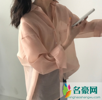 粉色系衬衫原本就有半透明的优点,穿在身上显得很清爽透气;尤其领口开大,秀出性感内衣,这样给人的感觉也洋溢着诱惑力。