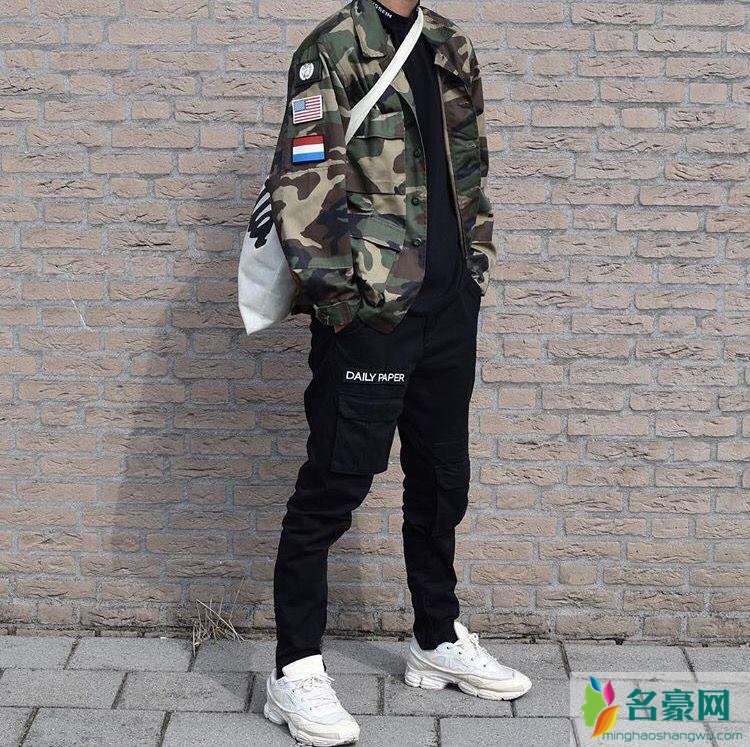 迷彩图案起源于战争,自然而然带有强烈的军事气息。所以搭配取材自军装的服装单品,如 M51、M65、MA-1等,或者配合军靴均可轻易营造出硬朗正派的气质。而近年来自军事文化的设计一直在潮流界盛行,几乎每一季度都可看见军事单品的身影。