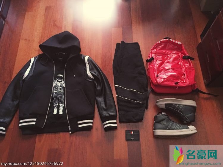 鞋子搭了个贱的CL铆钉,特别喜欢这件夹克,拼接了个北脸的包在上面,最近流行的解构主义,很推荐老铁们购入,槽点就是因为是拼接袖子那里格外硬,拼接的是北脸的包的两侧,上身感觉就像个盔甲一样。supreme依旧火的让人搞不懂,这件卫衣现在也涨了不少,喜欢的老铁们抓紧入手,不然越来越贵,我的脸已经被打肿了。