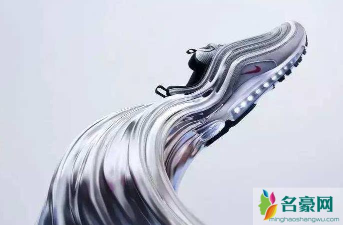 1997年,设计师 Charistian Tresser通过东京急速飞驰的新干线列车,设计出 Air Max 97 的鞋身,然后又受到山地自行车上金属饰面的启发——具有银铝表面的钛金属框架,就这样这双“银色子弹”出膛了。