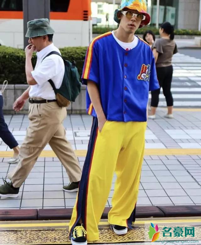 (黄蓝撞色,加上阔腿裤的运动材质,Vans鞋带颜色的呼应)