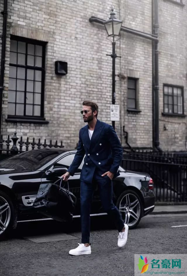 不要嫌弃小白鞋烂大街,对西装的混搭来说,它是最实搭的,也是最安全不易出错的运动鞋。无论你的西装是什么颜色,小白鞋都能非常和谐地上脚。