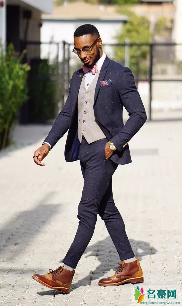 而一些麂皮、翻毛皮的矮帮靴不是不可以选择,但要注意,一些丝绒的,或者是太过正式的西装、晚礼服跟它在材质上同样也是不搭的。