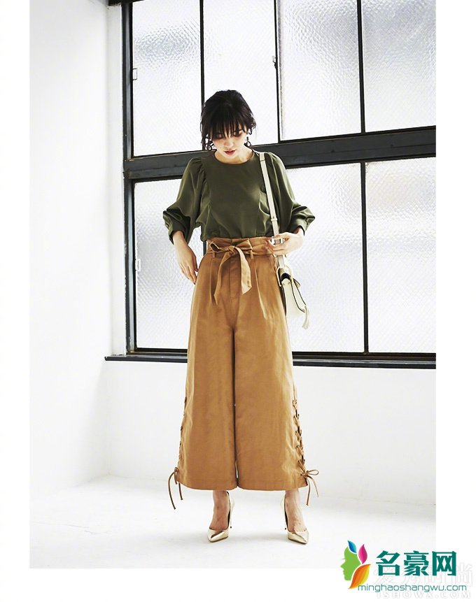 灯笼袖子是今年的一个流行趋势,这个袖子是所有女生的最爱啊!卡其色的阔腿裤,不同于黑色的无趣,颜色上的选择会让人觉得潮流满满哦!