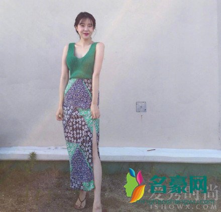 上下的搭配的颜色是需要相互搭调的颜色,绿色的这个颜色很好,看起来就是有夏天的味道。开叉裙开到你的腿部,就会显得腿很长的哟!