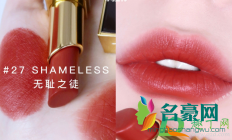 27#SHAMELESS无耻之徒这支枫叶红棕色红调多一点,所以上嘴不会很暗,绝对是黄皮亲妈,显白两个度不是问题!常规颜色不会出错,不挑皮,除非特别特别黑。很显气色,而且显白又百搭!