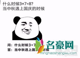 近日网上有一个很火热的话题就是3加7啥时候等于8,给出的答案是国庆的时候,确实是很形象的哈,今年的国庆和中秋节放假合在了一起,本来国庆是放7天的,中秋放三天,但是因为两个节日重了,所以就有了网上的3+7=8的说法,也算是调侃的意味吧。