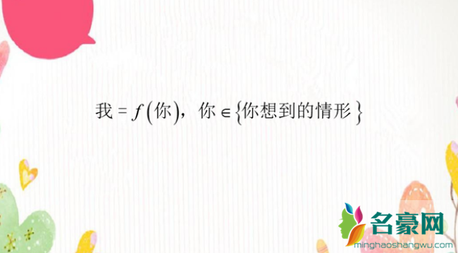 有不少小伙伴们选择在520这一天表白,那么要怎么和对方说520呢?其实也是可以用数字符号表达的!小编在这里举一个简单的例子,例如你想告诉对方“你是我的全部,无论是天涯海角还是刀山火海,我都伴你左右,形影不离,你若白头,我也白头”。简单来说就是“我要与你形影不离”。那么我们用数学语言可以这样表达:你属于你能够说出的任何情形,而我就是以你为自变量的函数。如下图: