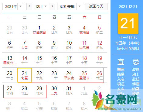 所以2021年冬天的一九天时间是在2021年12月21日(冬月十八)~2021年12月29日(冬月十五)。