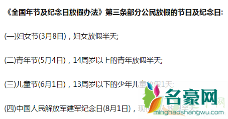 我国法定节假日仅有元旦、春节、清明节、劳动节、端午节、中秋节、国庆节七大节日,而妇女节、青年节、儿童节、建军节属于部分公民放假的节日及纪念日,因此妇女节放假属于“法定半天假日”。