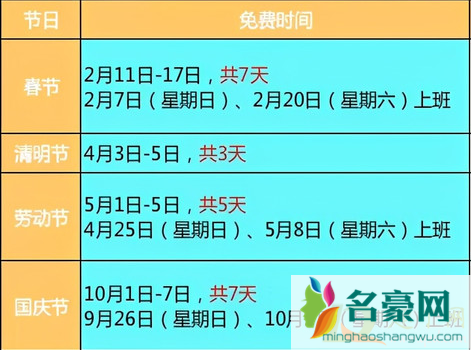 虽然每年节假日,符合要求的载客车都有可以免费通行高速的时间段,但是并不是所有的节假日都可以的。七个法定节假日中,只有春节、清明节、劳动节和国庆节这四个节假日放假期间是免费的,放假最后一天的24点结束免费。