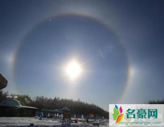 据悉,太阳晕是一种罕见的大气光学现象,又称圆虹,是太阳光通过卷云时冰晶的折射或反射形成的。当光线进入卷云中的冰晶时,它会被折射两次,并在不同的方向上分散成不同的颜色。晕分为两种类型:全晕圈和缺口晕。空出现了完整的光环,也就是说,整个太阳被光环所包围。日晕的出现往往预示着天气会有一定程度的变化。