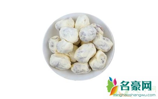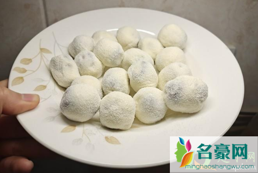 5.在棉花糖尚未完全冷却的情况下,将红枣一个接一个地拉下并均匀揉捏,然后将揉好的奶枣放入盘子中,撒上20克奶粉以防止表面粘附。这样就完成了美味的奶枣。