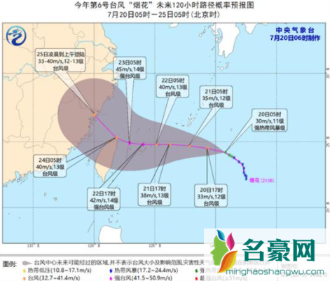 今年(2021)第6号台风“烟花”在7月21日凌晨5点位于台湾省宜兰县以东大约640公里的西北太平洋洋面,7月21日11时升级为强台风。预计7月23日傍晚前后,将移入东海南部海面,而后转向西北方向,可能将于7月25日凌晨到上午在浙闽一带沿海登陆(台风级,12-13级,33-40米/秒),上海则会受到比较大的影响。