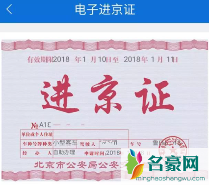 2、“北京交警”APP网上申办。“北京交警”APP→“进京证办理”→手机号码+验证码登录→点击“+”添加车辆→输入机动车信息、选择车型→上传车辆、证件照片→选择进京时间、路口、时长→点击“提交”,等待审核。大约2个小时之后就可以获得电子“进京证”。