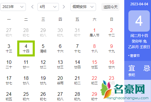 2023年的寒食节是在4月4日这一天,农历闰二月十四。4月5日则是2023年的清明节。寒食节在每年清明节公历日期的前一到两天,同时也是冬至日后的105日。寒食节最早可追溯至2600多年前的春秋湿气,古时候的寒食节这天只能吃冷食,不能烧火做饭。