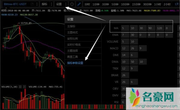以aicoin为例,打开K线图后点击最上方的【设置】-【指标参数设置】在MA一栏填写对应的数字即可,如果设置5日线就填写数字5