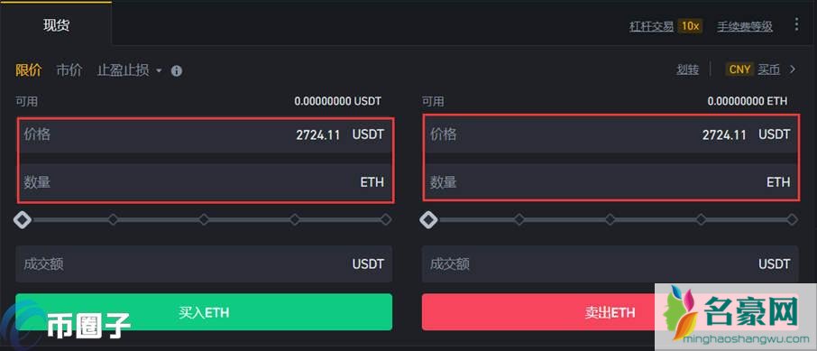 6、点击ETH/USDT交易对,进入购买页面。