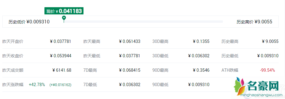 ENG流通市值4613.81万美元,流通数量7483.61万,24小时成交额258.94万美元。