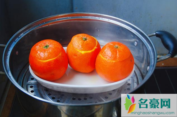3、把处理好的橙子放在碗里,放在锅里,再蒸15分钟,锅里的橙子就可以蒸好了。关火后,把它们拿出来降温,吃橙子,喝碗里的汤。这样做的蒸橙子对止咳、平喘、化痰有很好的效果。