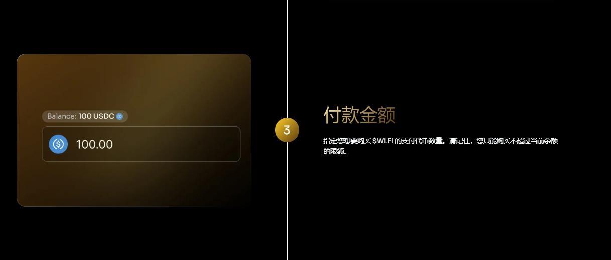 3、指定您想要购买 $WLFI 的支付代币数量。