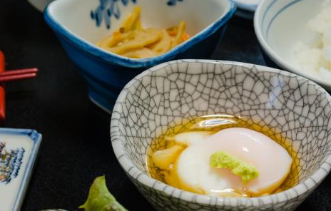 6.温泉蛋可放于炒面上或泡在酱汁里吃,撒上葱花,吃起来很有滑顺感。