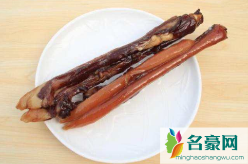 3、三天后,取出猪肉,用刀在猪肉的一个角切一个小口,用绳子穿过它,在阳光下晒半个月左右。为了让熏肉更好看,还可以根据每个家庭的情况准备一些柴火、橘皮和柚子皮来熏,毕竟我们市里做不了熏熏肉。