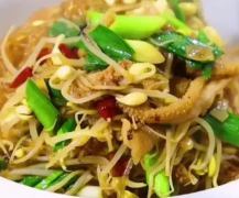 食材:豆芽,粉条,肉丝,葱,姜,盐,酱油