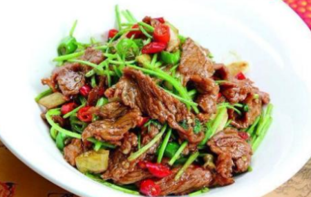 5放入煮好的风干牛肉翻炒2分钟左右。